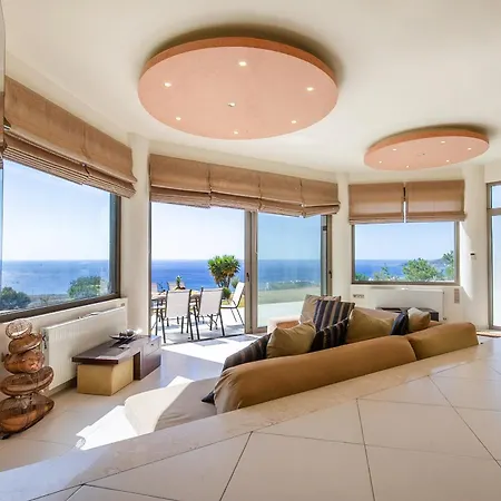 Terra Kalierou Villa dysponuje tarasem z widokiem na morze, 25 min jazdy od lotniska Rodos.